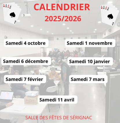 Concours belote Salle des fêtes1 chemin de tour de ronde 82500 Sérignac