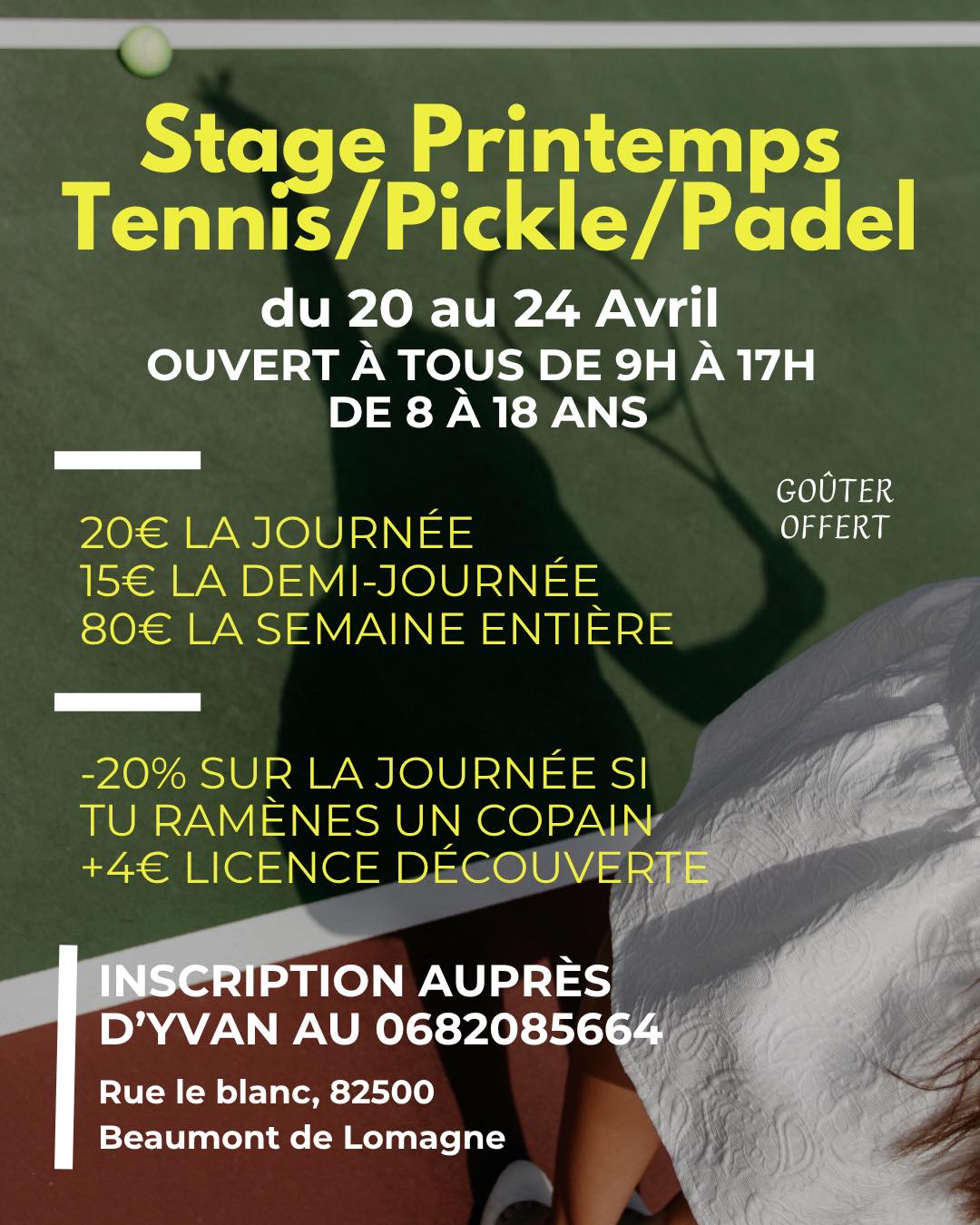 Stage de tennis : vacances de Pâques Courts du Tennis club Beaumontoisrue du blanc 82500 Beaumont-de-Lomagne