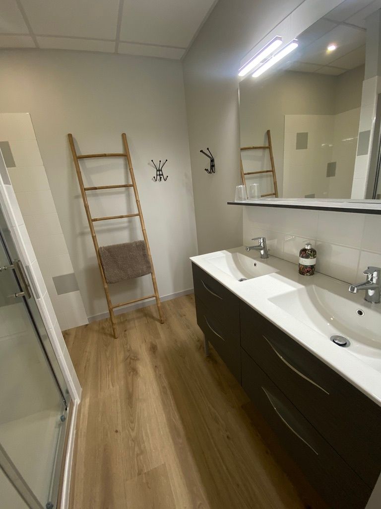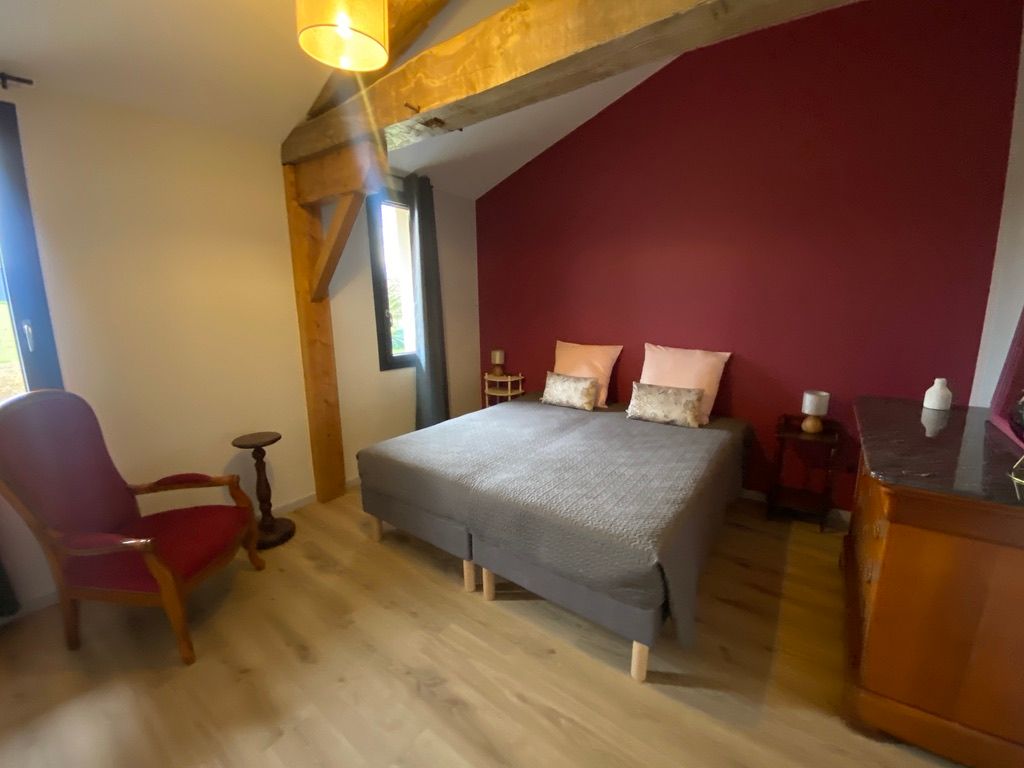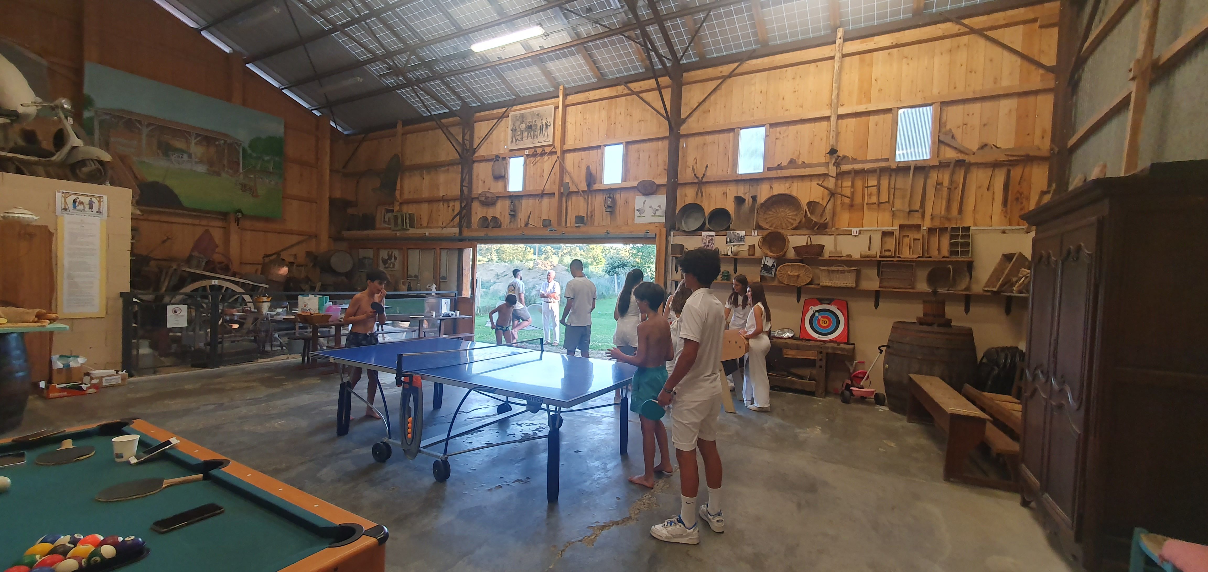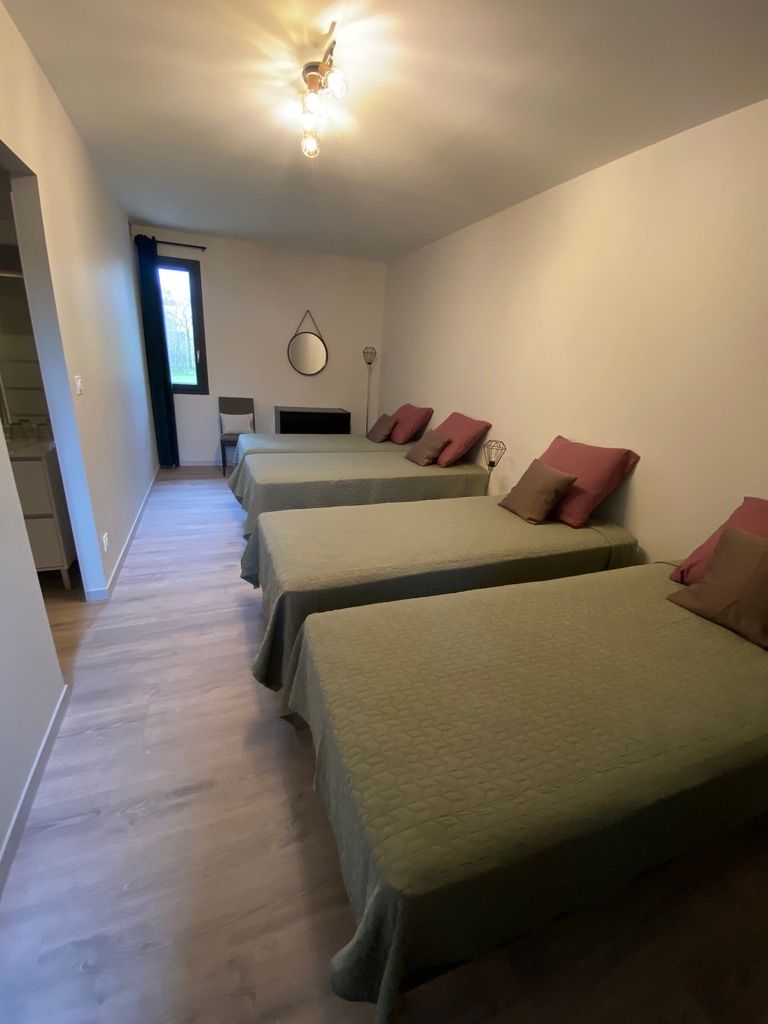 On the 1st: bedroom in mezzanine (1×140, double bed, shower room / wc). 2 bedroom (1×160, cot, shower room / wc). bedroom (3×90, bathroom / wc). Illuminated play area under shelter in an old furnished hangar: American billiards, table tennis, table football, pétanque, garden furniture. WIFI. Pets accepted (extra charge). Tourist tax not included (June to September).