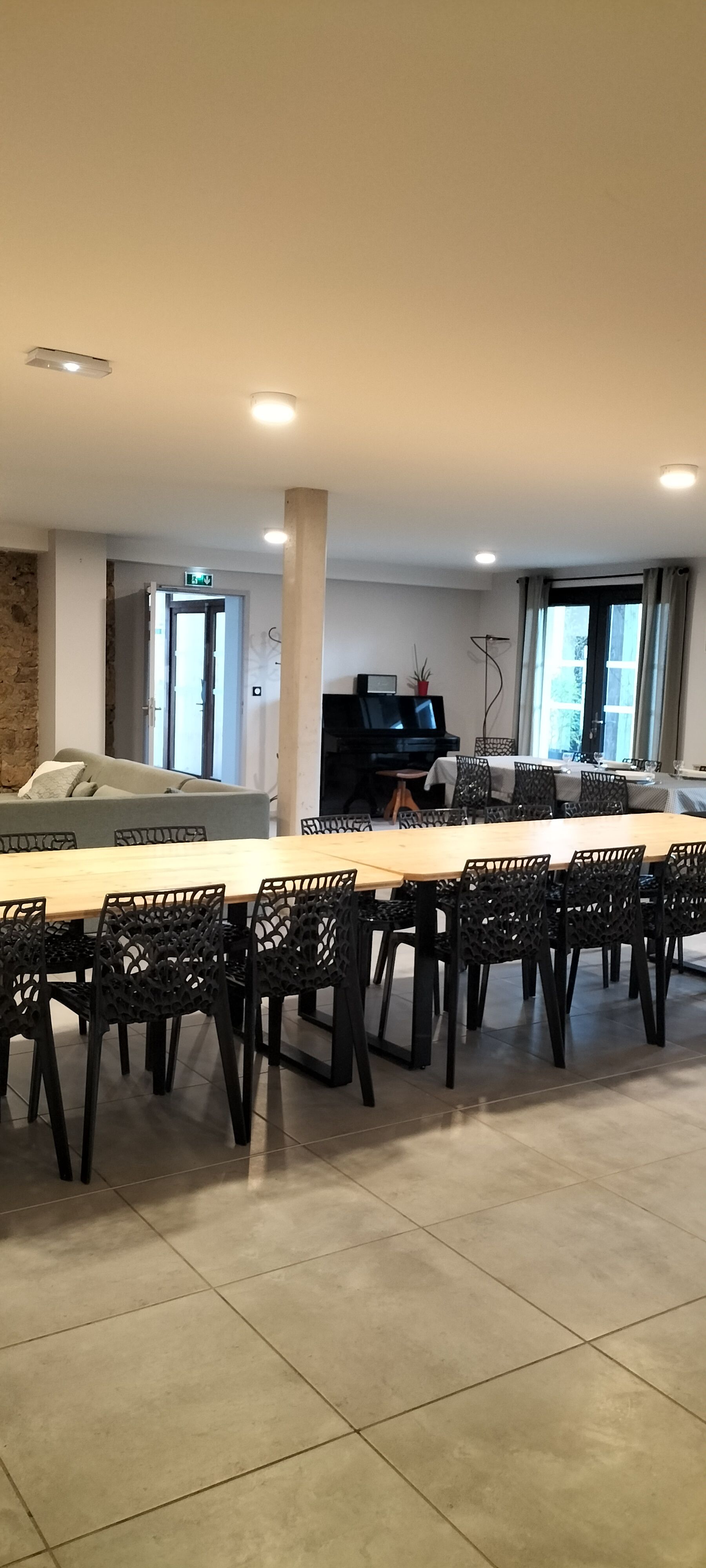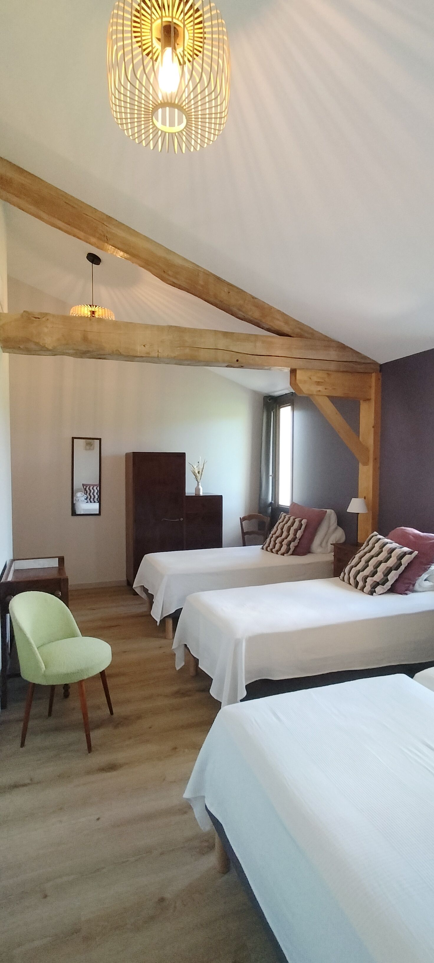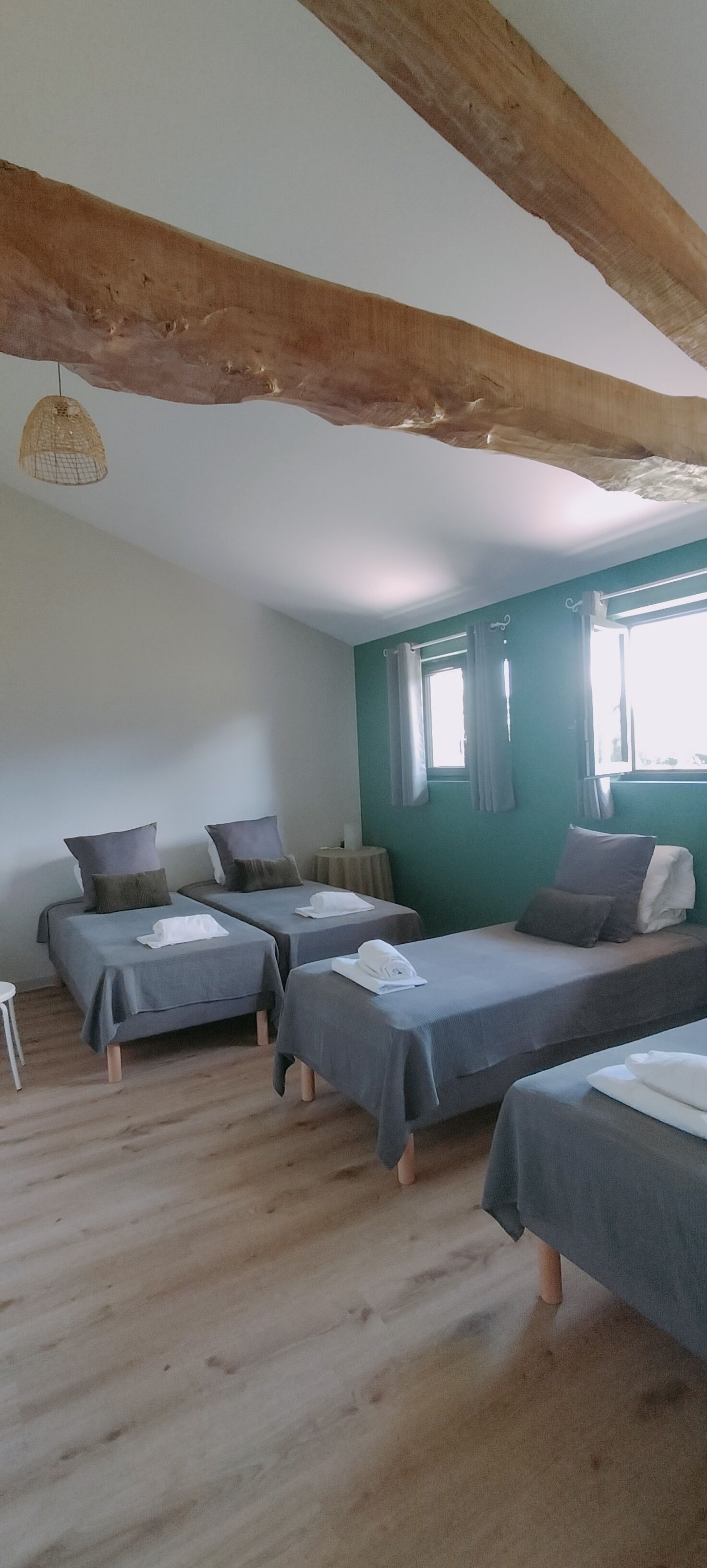 On the 1st: bedroom in mezzanine (1×140, double bed, shower room / wc). 2 bedroom (1×160, cot, shower room / wc). bedroom (3×90, bathroom / wc). Illuminated play area under shelter in an old furnished hangar: American billiards, table tennis, table football, pétanque, garden furniture. WIFI. Pets accepted (extra charge). Tourist tax not included (June to September).