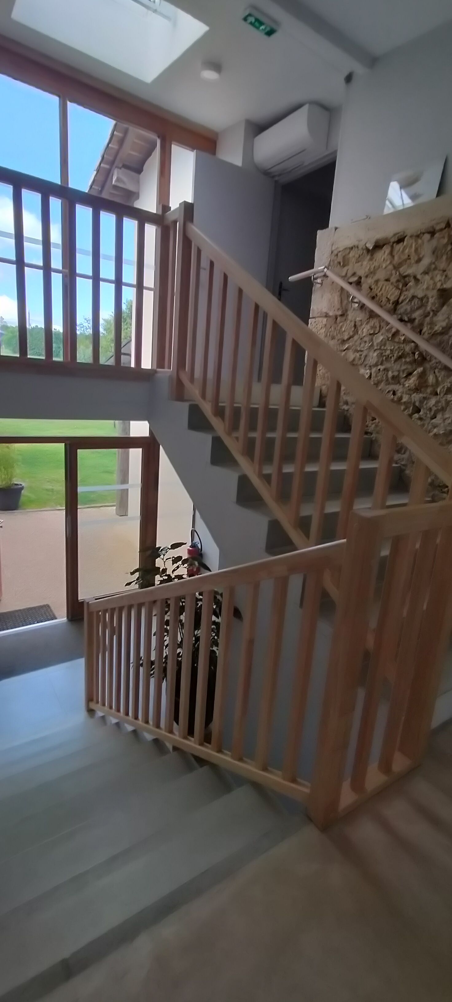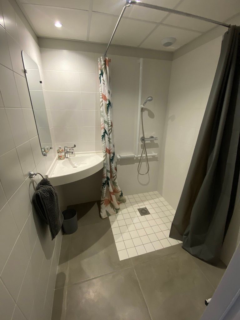 Ground floor: South side: living room. WC with handicap access. Large living room / insert fireplace, dining room / kitchen. family room with handicap access (1×140 + 1×90, 1 pull-out bed, shower room / wc). 1 bedroom (2×90, shower room). Terrace / awning. independent living room with library (convertible sofa 2 pers.)