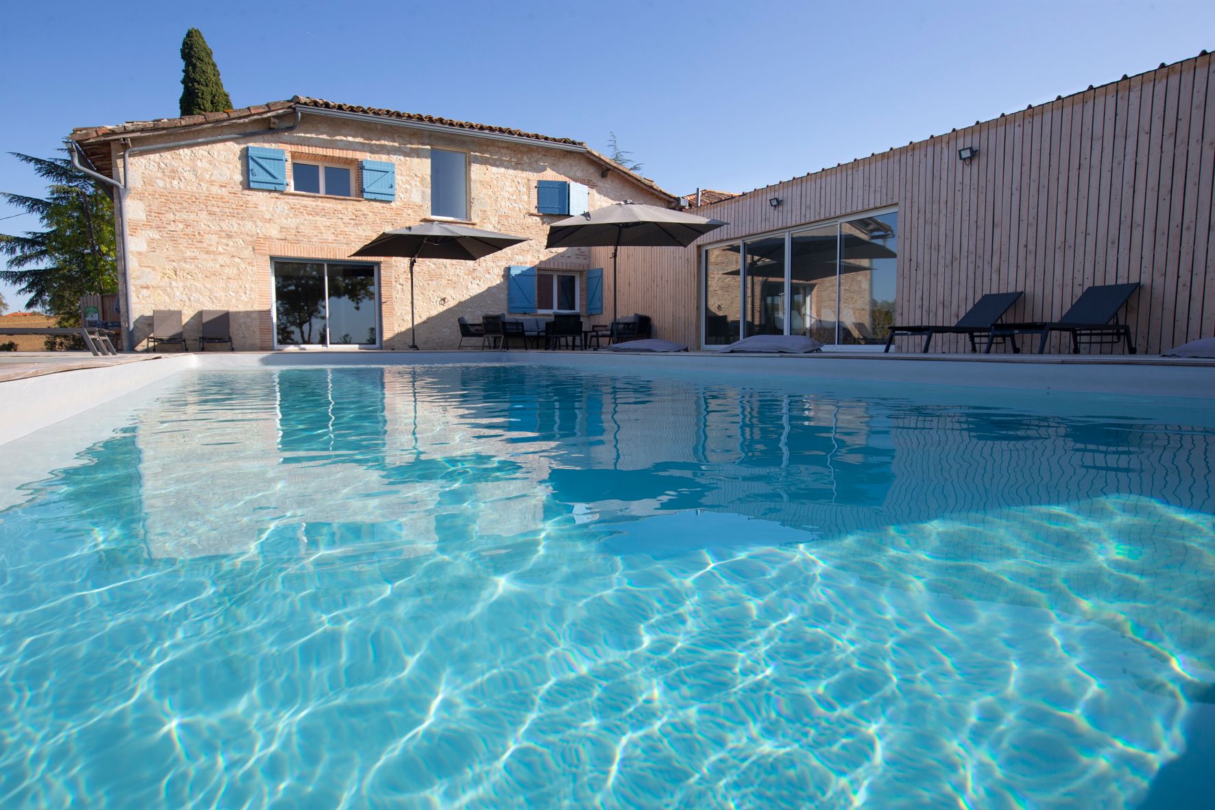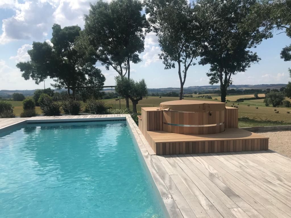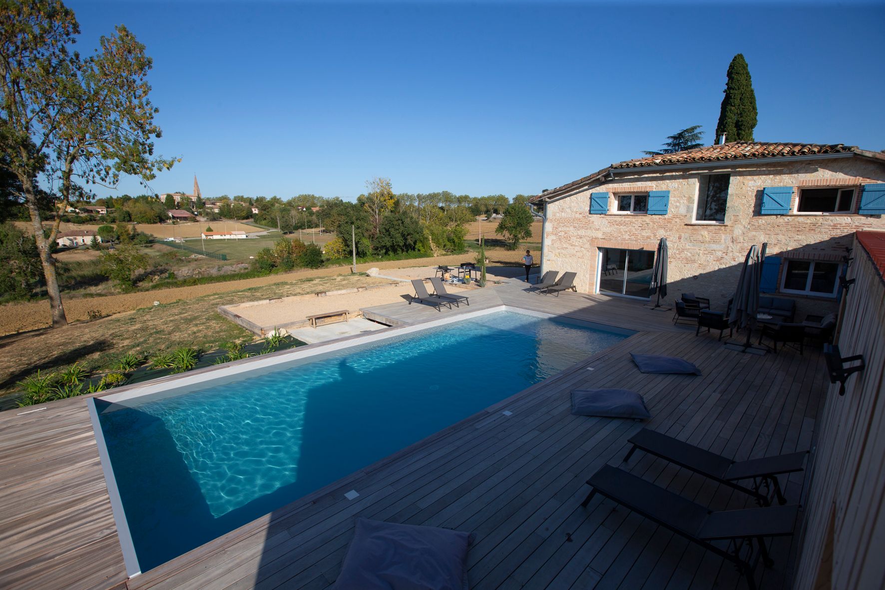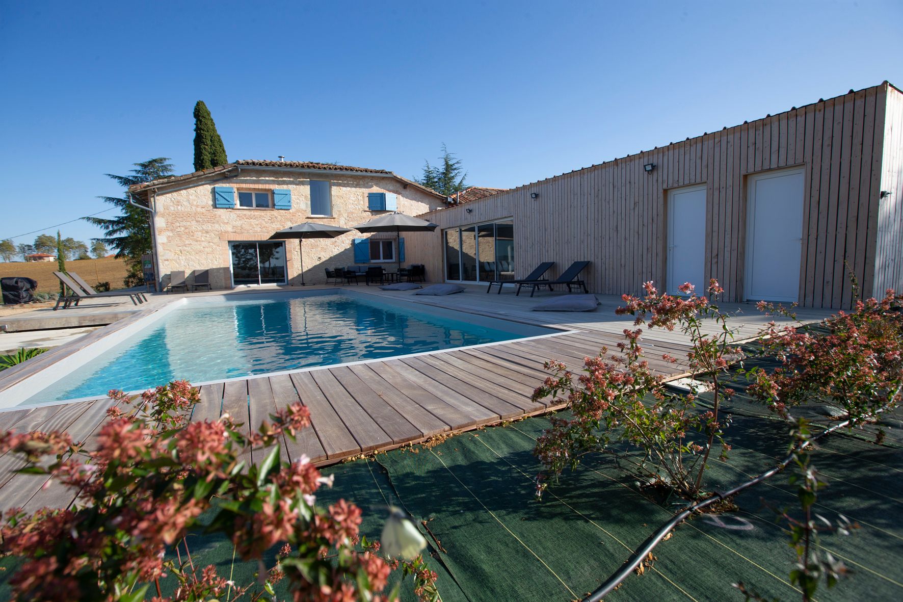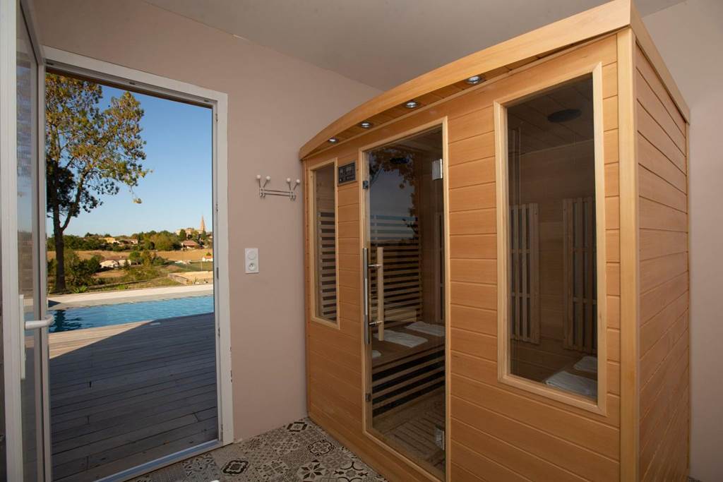 Here “the family spirit has a view of the village of Faudoas, its hills and agricultural fields. Summer kitchen fitted out along the beach by the swimming pool, heated swimming pool and Norwegian jacuzzi, sauna in the bathroom adjoining the swimming pool with wc.