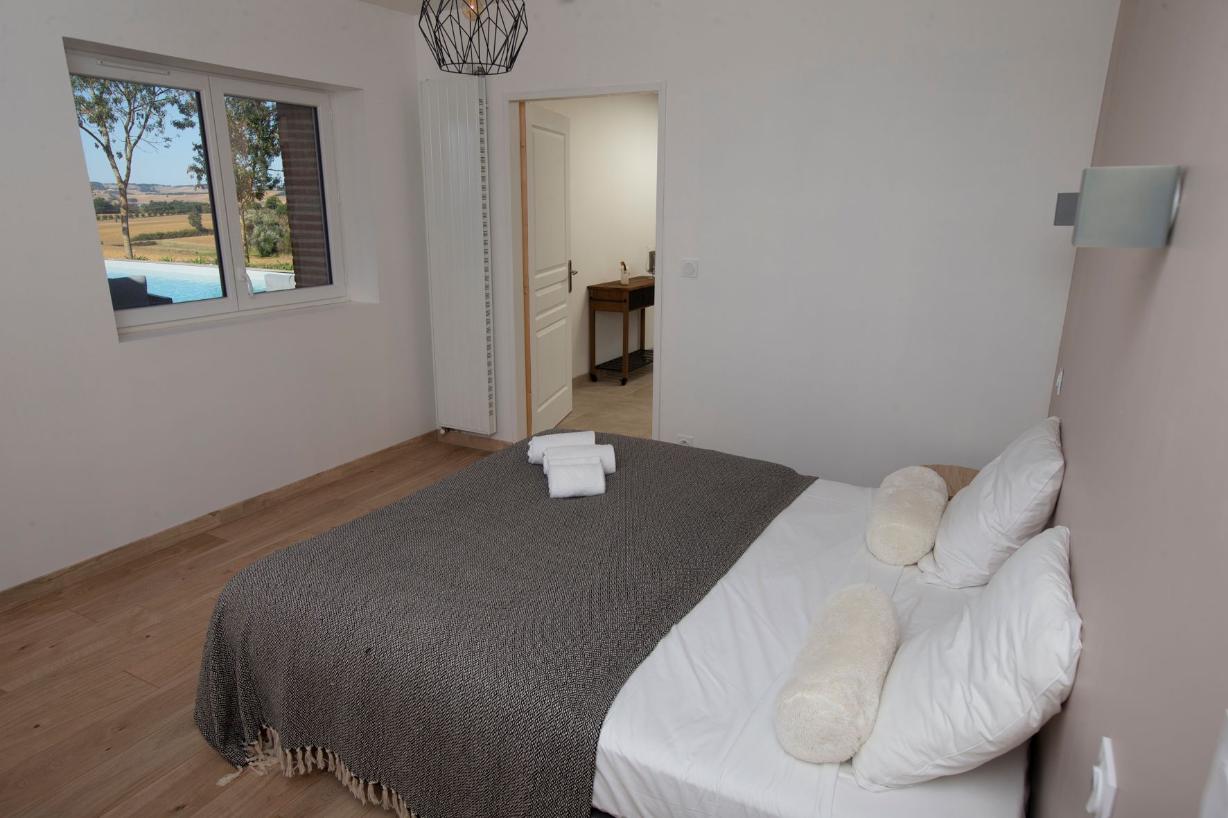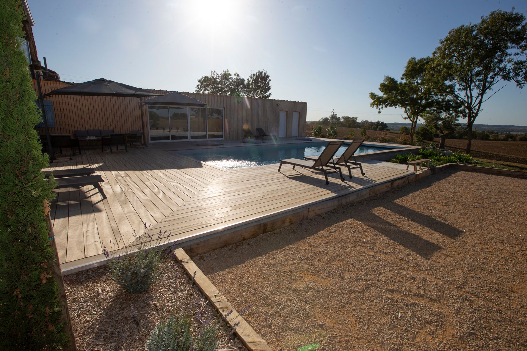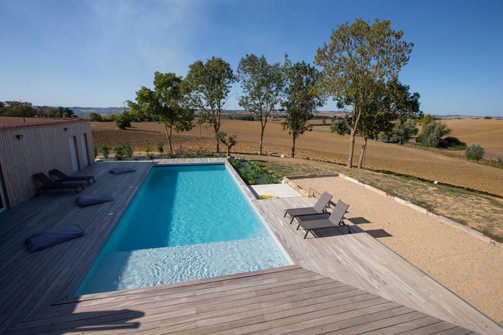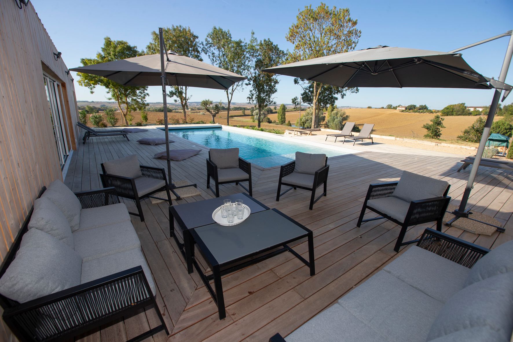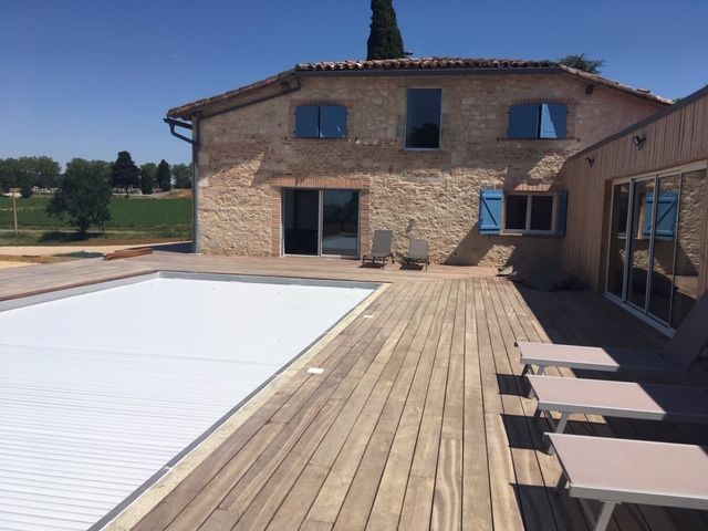 Here “the family spirit has a view of the village of Faudoas, its hills and agricultural fields. Summer kitchen fitted out along the beach by the swimming pool, heated swimming pool and Norwegian jacuzzi, sauna in the bathroom adjoining the swimming pool with wc.