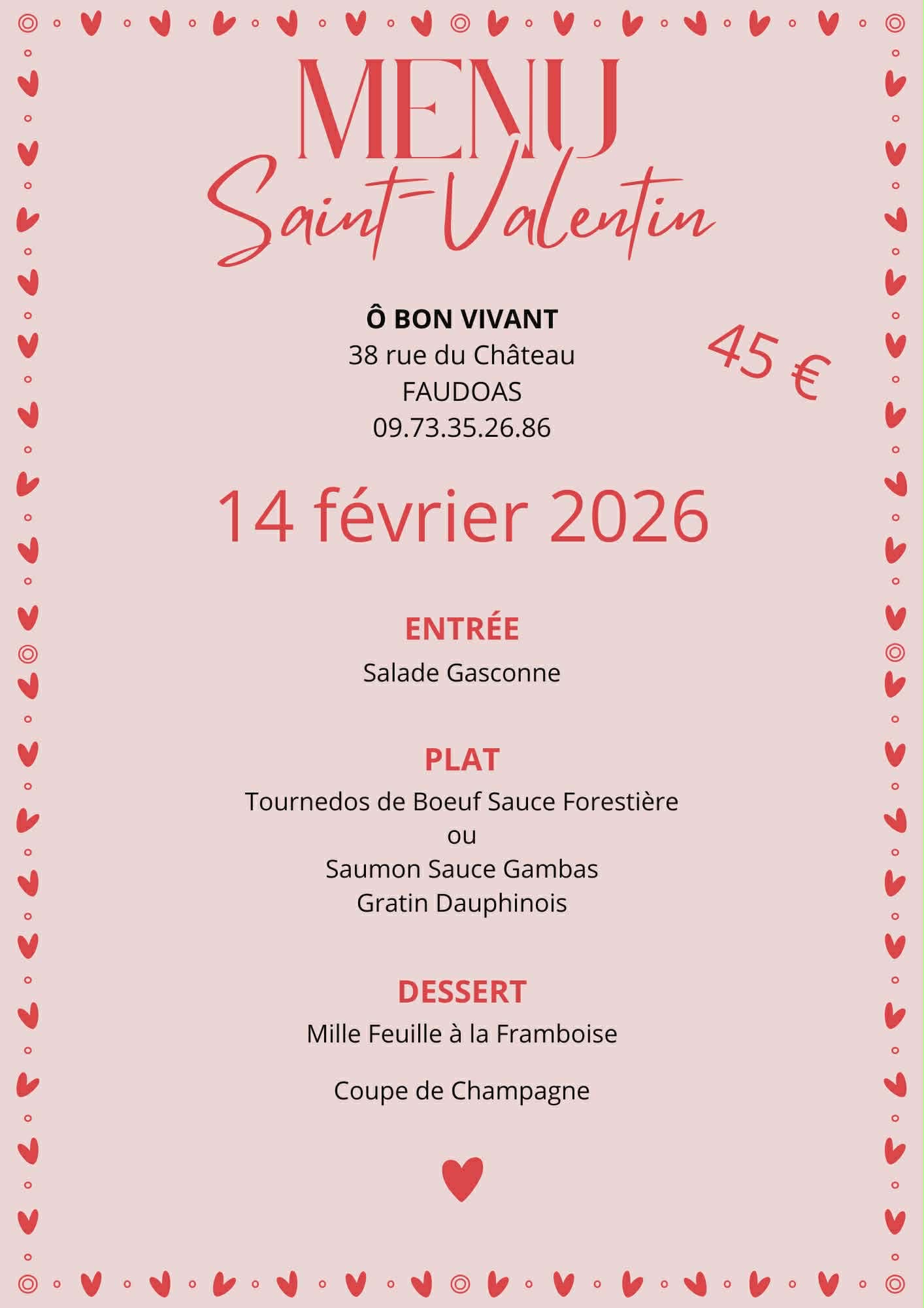 St Valentin “O bon vivant” O Bon Vivant38 rue du châteauLe bourg 82500 Faudoas