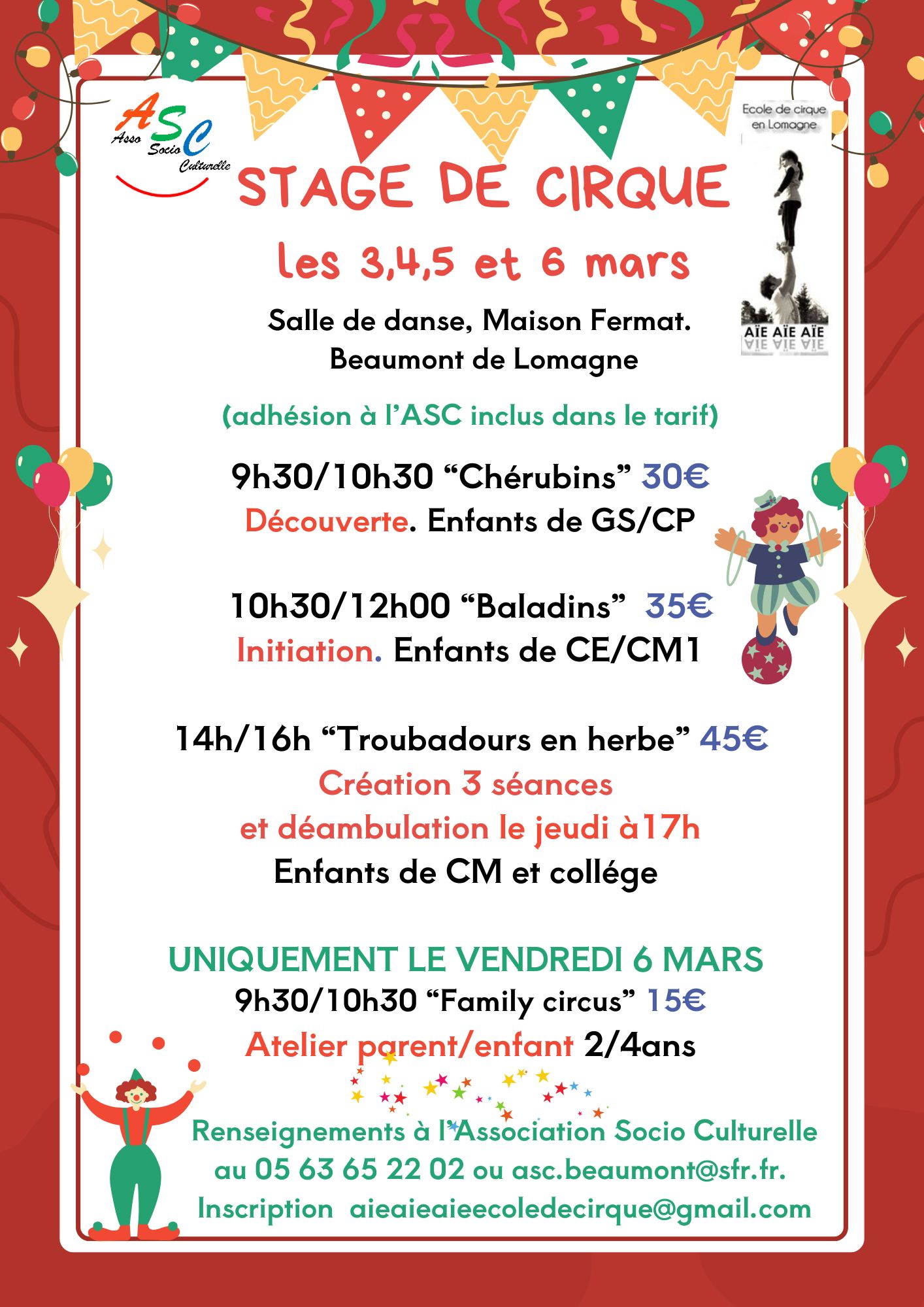 Stage de cirque Espace dance – Maison Fermat3 rue Pierre de Fermat 82500 Beaumont-de-Lomagne