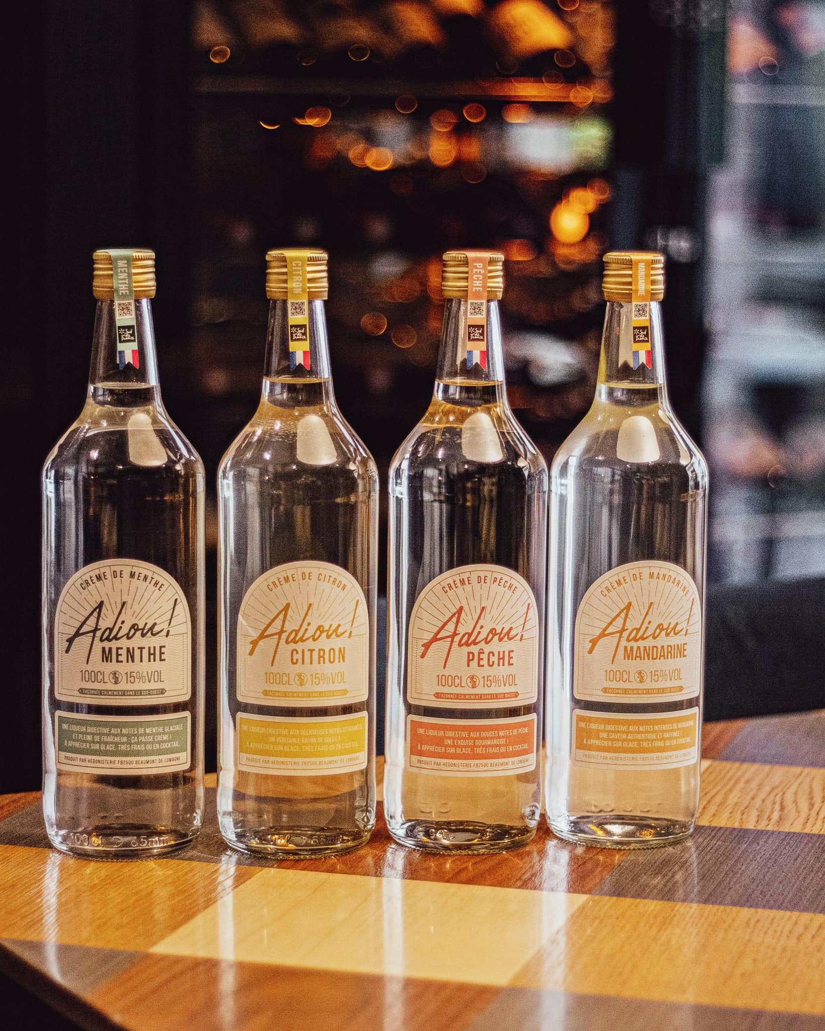 Nées en 2022, les Crèmes Adiou! tirent leur nom du chaleureux « Adiou ! » (« Salut ! » en langue d’Oc), symbole de convivialité. Chaque étape, de la sélection des ingrédients à la mise en bouteille, est artisanale, garantissant des liqueurs riches et fruitées.