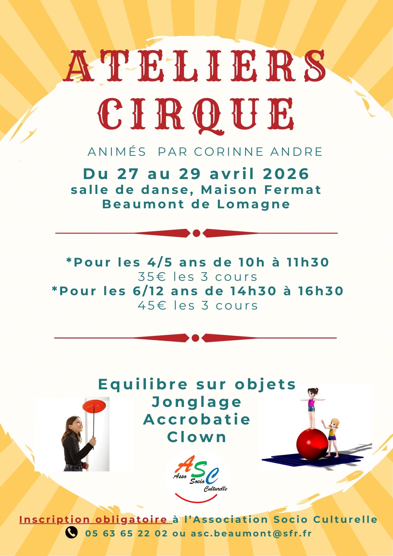 L’ASC vous propose 3 jours d’ateliers en fonction des âges des enfants :