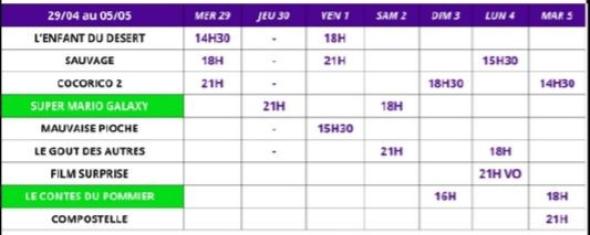 Au cinéma du 29 avril au 5 mai