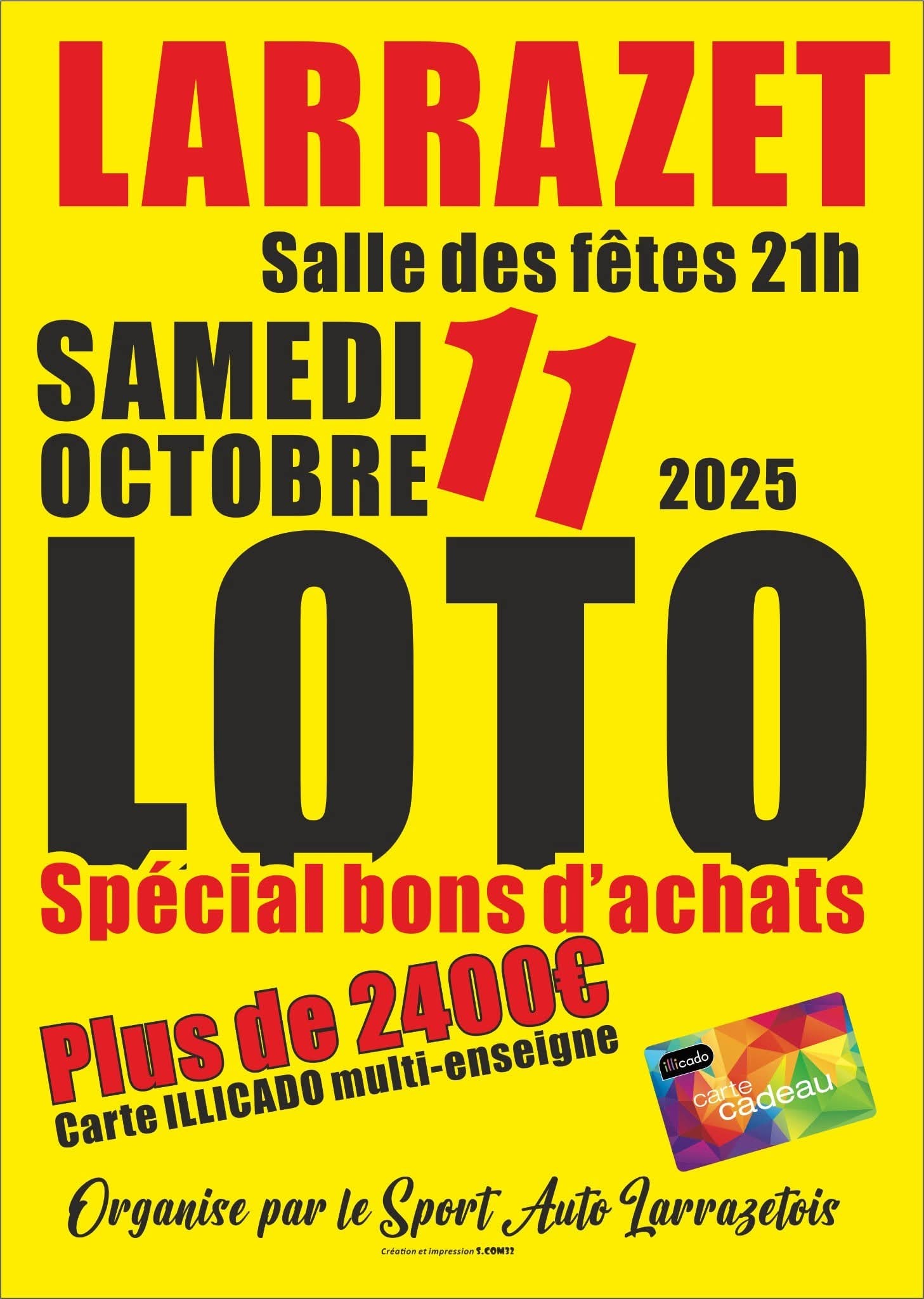 Loto organisé par l’association SPORT AUTO LARRAZETOIS