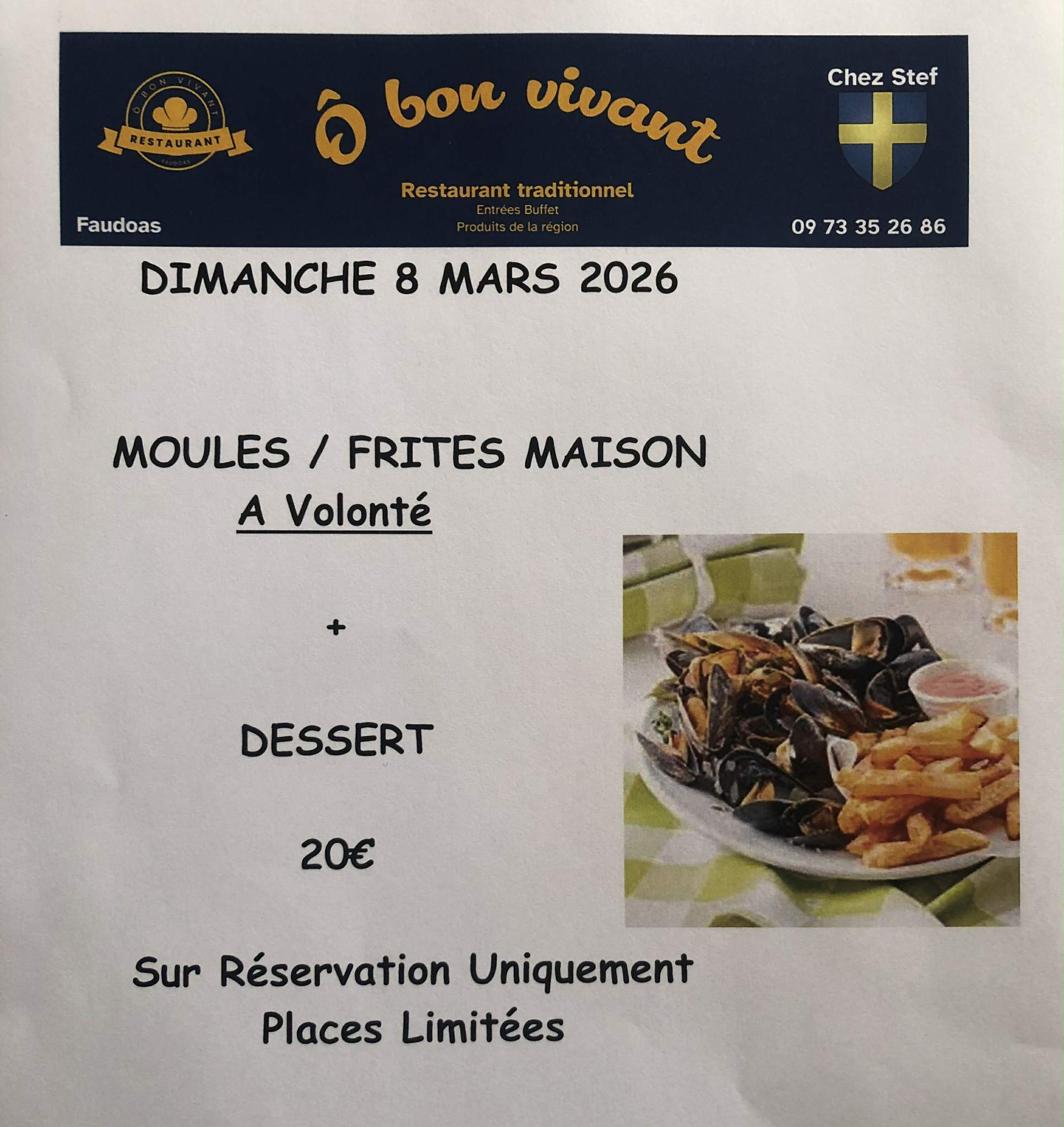 Repas moules frites à volonté.