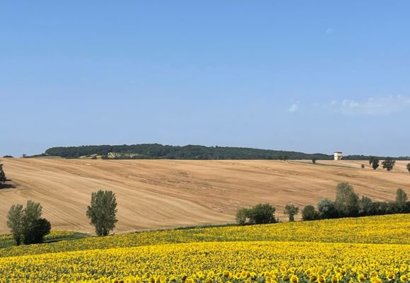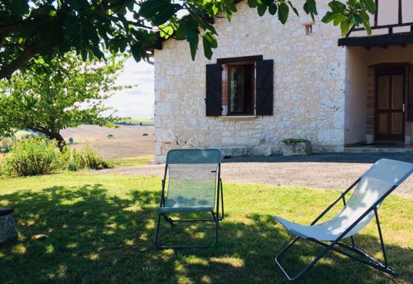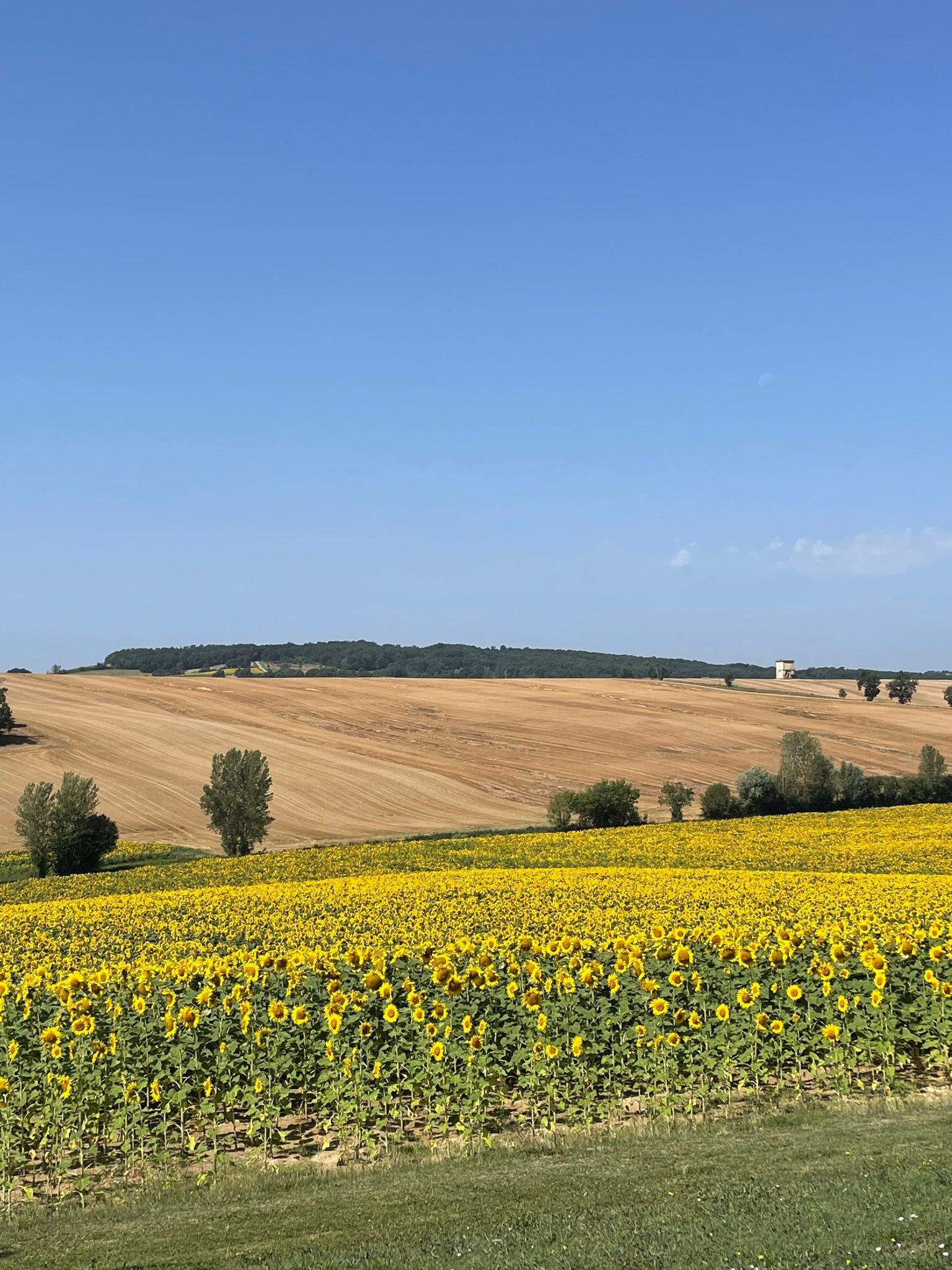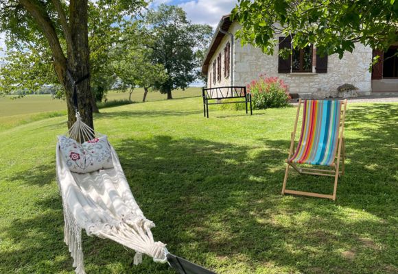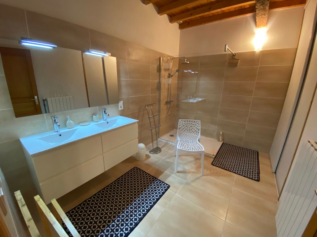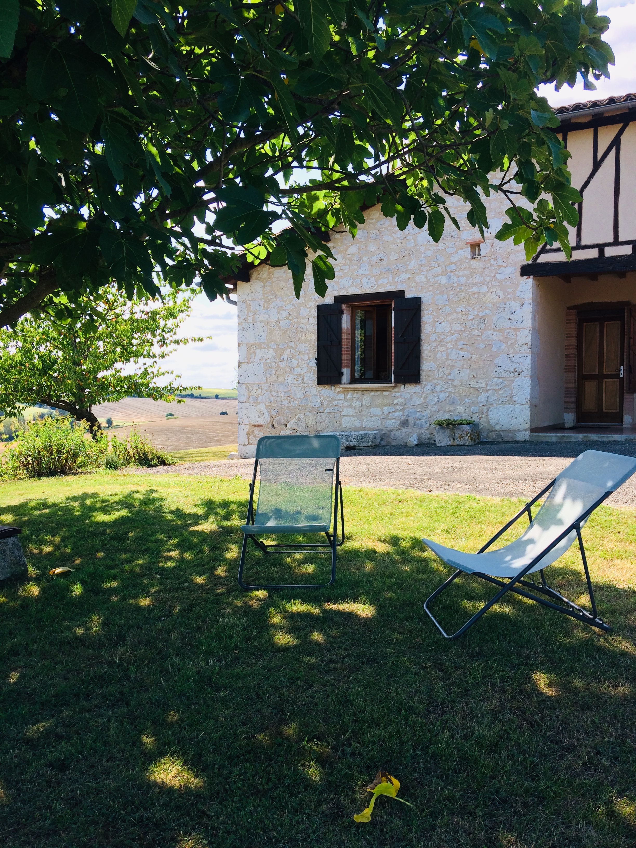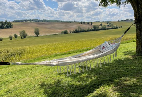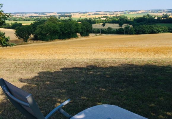 ❤️ ON AIME : le grand parc avec vue sur les coteaux de Lomagne, les espaces ombragés autour du gîte, la salle de bain spacieuse avec double vasques et douche à l’italienne.