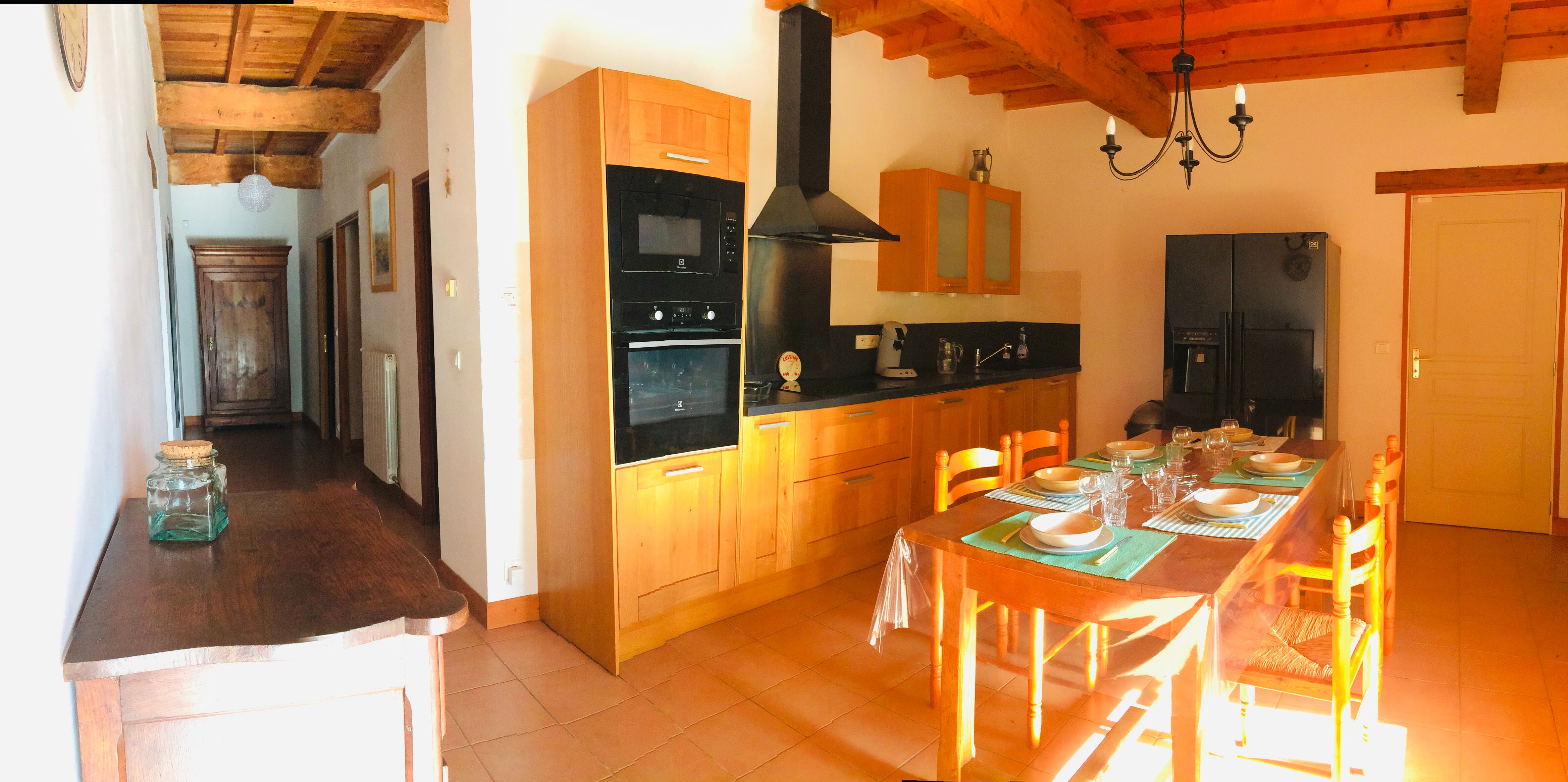 Entièrement au rez-de-chaussée, cette jolie lomagnole comprend une grande cuisine (éléments intégrés, lave-vaisselle, réfrigérateur, congélateur, micro-ondes), un salon avec canapés TV, 1 chambre (1 lit 140 1 lit 0,90), 1 chambre (1 lit 160 1 lit 0,90), une salle d’eau (douche à l’italienne, 2 vasques), 1 wc indépendant, 1 buanderie (avec lave-linge, rangement). Bel espace autour du gîte avec salon de jardin, transat, barbecue). Linge de lit et linge de toilette et linge de maison compris dans le prix.