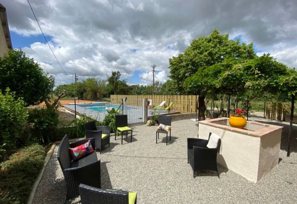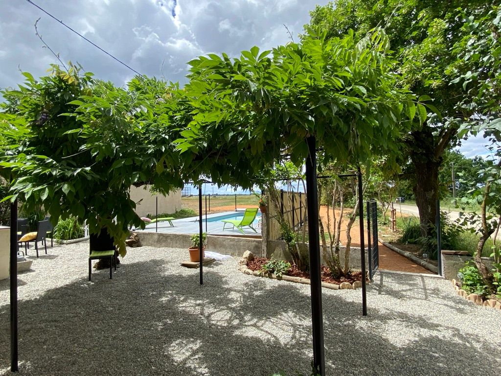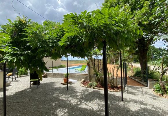 Sous la tonnelle fleurie, face à la piscine comment ne pas apprécier les vacances ici…