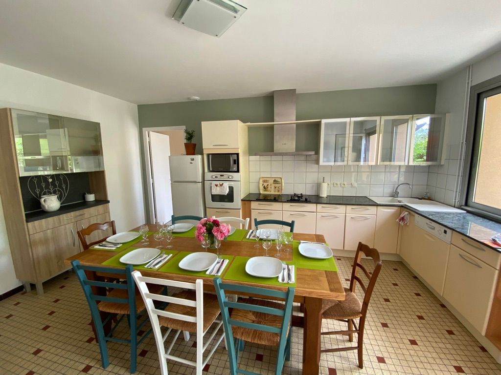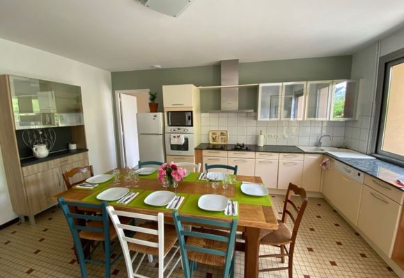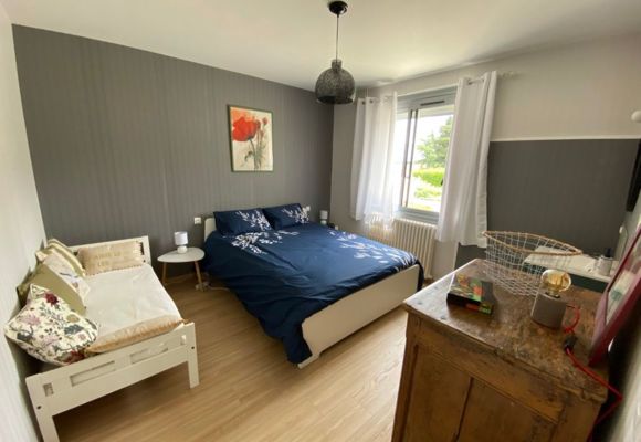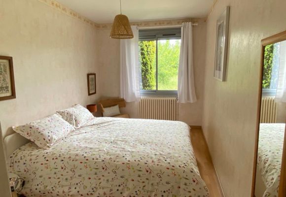 Le logement entièrement au rez-de-chaussée comprend une cuisine aménagée avec éléments intégrés : lave-vaisselle, micro-ondes, four, réfrigérateur, congélateur, donnant sur une grande salle à manger salon (canapé d’angle, canapé, TV, cheminée Insert). Une chambre avec 1 lit superposé en 0,90 sur 1 lit 140, une chambre 1 lit 140, une chambre 1 lit 160, une chambre 1 lit 160 et un lit d’enfant (jusqu’à 6 ans) et un lavabo. 2 salle d’eau avec chacune douche à l’italienne, 1 double vasque dans une salle d’eau et deux vasques dans la 2ème et un wc dans une salle d’eau. Un wc indépendant. Dans le grand couloir un espace jeux pour enfant a été aménagé avec bureau jeux divers et table à langer. Un cellier avec lave-linge. Cour gravillonnée avec tonnelle, salon de jardin, table et chaises de jardin, barbecue bâti. Wifi dans le gîte gratuit. Housse de couette, linge de toilette et linge de maison fournis et compris dans le prix. Piscine privative au logement clôturée avec une bâche à barre et portillon de sécurité (8×3,82×1,50 avec marches et deux petits jets massant. Logement mitoyen avec la maison des propriétaires, sans vis à vis et avec accès et parking indépendants. Forfait ménage obligatoire pour la clientèle entreprise (Voir fiche hébergement).